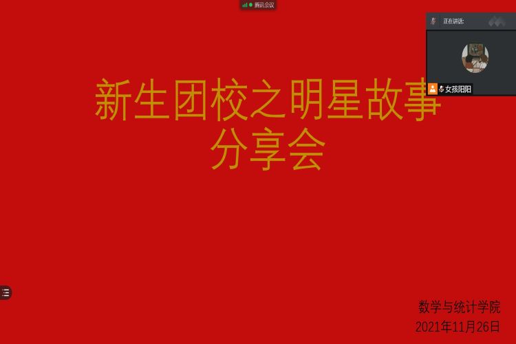 为深入学习贯彻习近平新时代中国特色社会主义思想,充分发挥共青团思想政治引领和价值引领的作用,深入挖掘员工先进典型,充分发挥榜样引领与示范作用。11月26日,太阳集团tyc9728组织21级员工干部、部分员工会成员以及往届明星学长学姐参加此次线上明星故事分享会。会议由组织部部长王金丰主持。