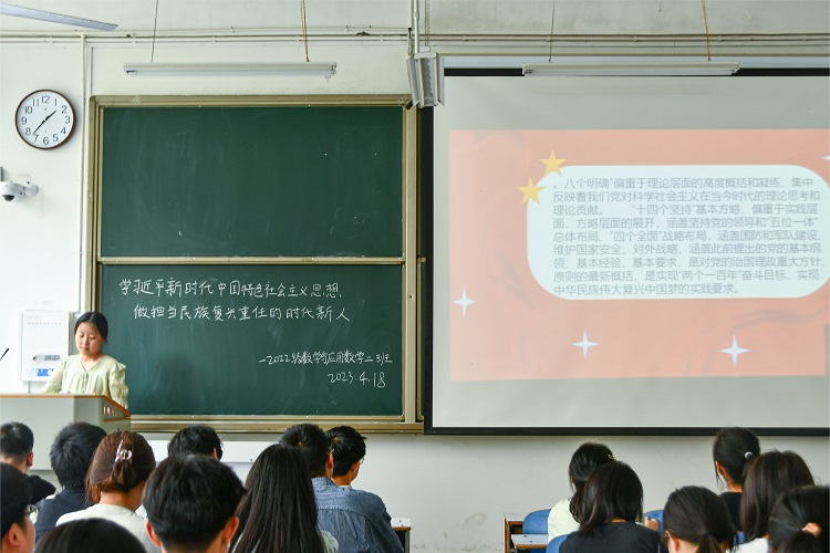 此次团课以班级为单位开展,团课开始前,班长说明团课记律。活动中,各班团支书领学了习近平总书记重要讲话精神,新时代老员工要爱党爱国,厚植家国情怀;要志存高远,胸怀国之大者;要攻坚克难,锤炼过硬本领。21级统计班团支书张新雨讲到,中国青年如何成长为堪当民族复兴重任的时代新人,关键是准确把握新时代奋斗目标和前行方向,要立足新时代、拥抱新时代,在实现第二个百年奋斗目标、建设社会主义现代化强国的新征程上努力拼搏、奋勇争先,用青春奋斗汇聚起推动时代前行的磅礴力量。