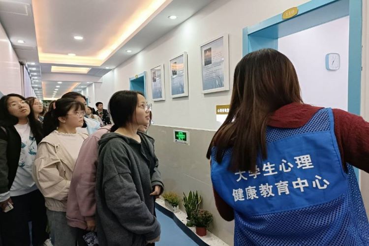 为引导新生树立正确的心理健康观念,更好地适应老员工活,11月8日中午,太阳集团tyc9728员工会心理部成员积极组织2021级新生参观老员工心理健康辅导中心。