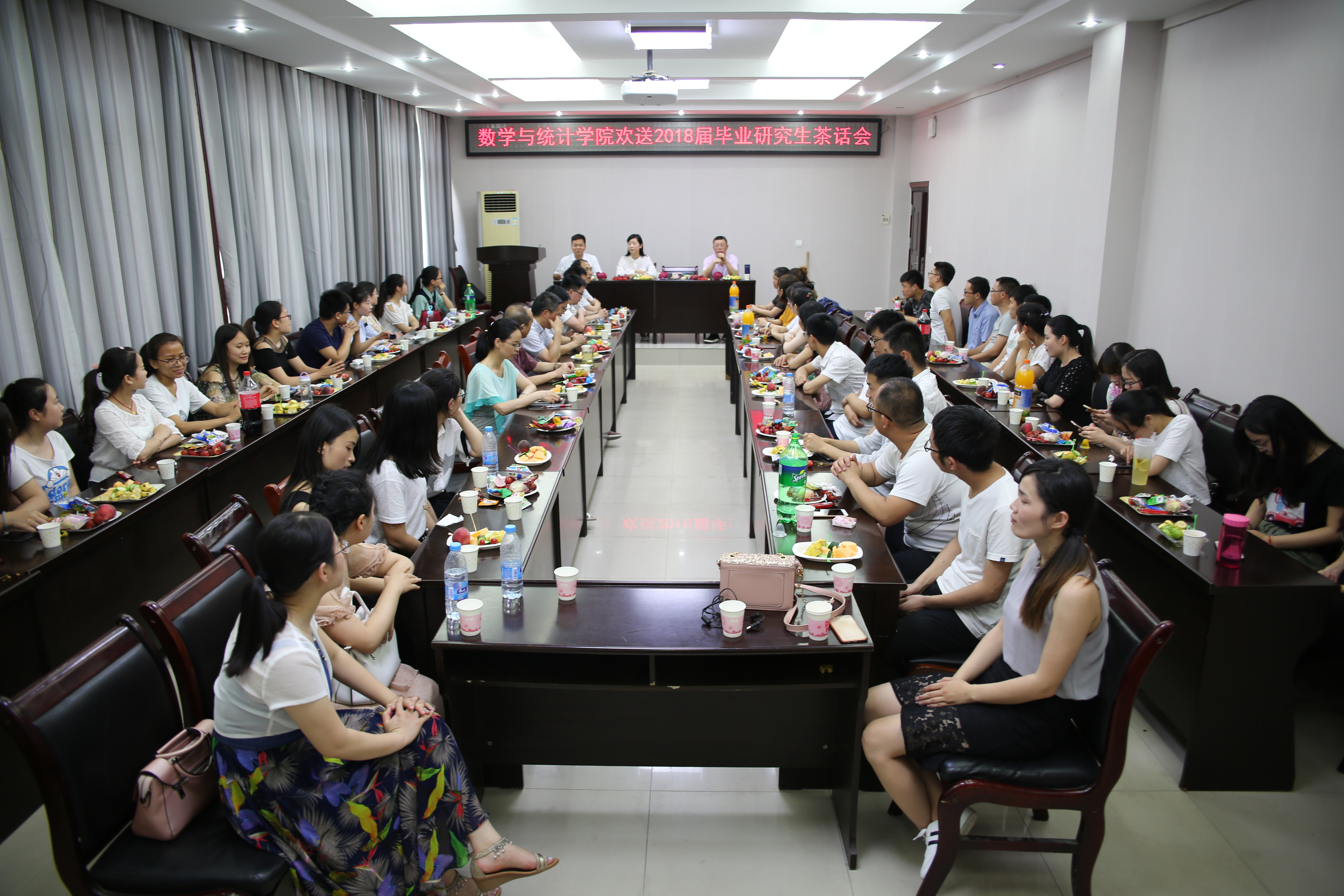 6月11日下午,太阳集团tyc9728在数学楼315会议室举办了欢送2018届毕业研究生茶话会。经理胡余旺教授、党委书记王娟副教授、数学研究所所长宋新宇教授、副经理柳合龙教授、副经理蔡礼明教授、数学研究所副所长周学勇副教授、党委副书记洪亮及研究生导师方勤华教授、彭玉成教授、王霞副教授、研究生秘书郑重以及2016、2017级全体在校研究生和2018届毕业研究生参加了茶话会。会议由副经理陈越奋副教授主持。