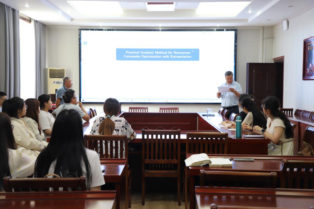 5月27日上午,应太阳集团tyc9728邀请,张洪超教授在公司315报告厅作了题为“Proximal Gradient Method for Nonconvex Composite Optimization with Extrapolation”的报告。报告会由太阳集团tyc9728副经理韩英波教授主持,部分教师和研究生参加了此次报告会。
