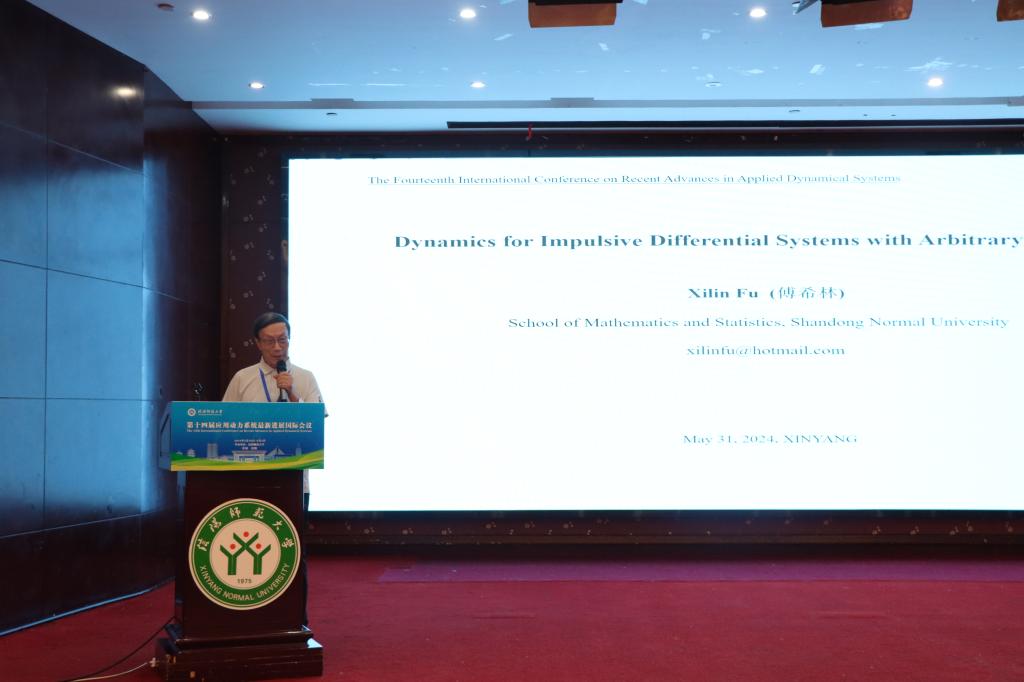 山东师范大学的傅希林,做了题目为《Dynamics for Impulsive Differential Systems with Arbitrary Time Pulse》的报告。