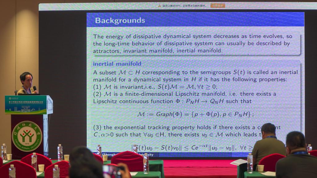 上海交通大学的尹坤,做了题目为《Invariant Manifolds for a PDE-ODE Coupled System》的报告。