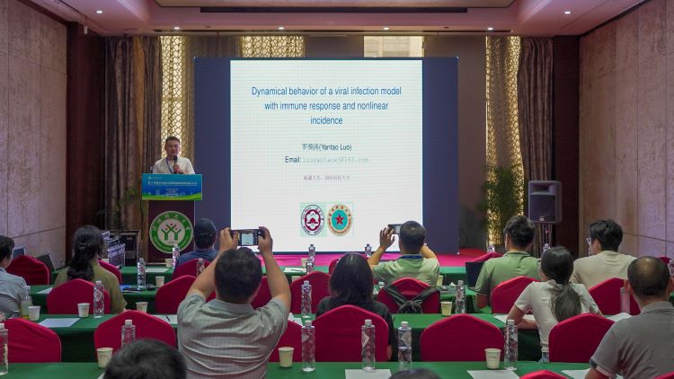 新疆大学的罗颜涛,做了题目为《Dynamical behavior of a viral infection model with immune response and nonlinear incidence》的报告。