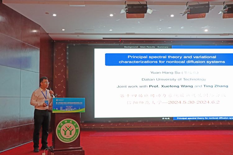 大连理工大学的苏远航,做了题目为《Principal spectral theory and variational characterizations for cooperative systems with nonlocal and coupled diffusion》的报告。