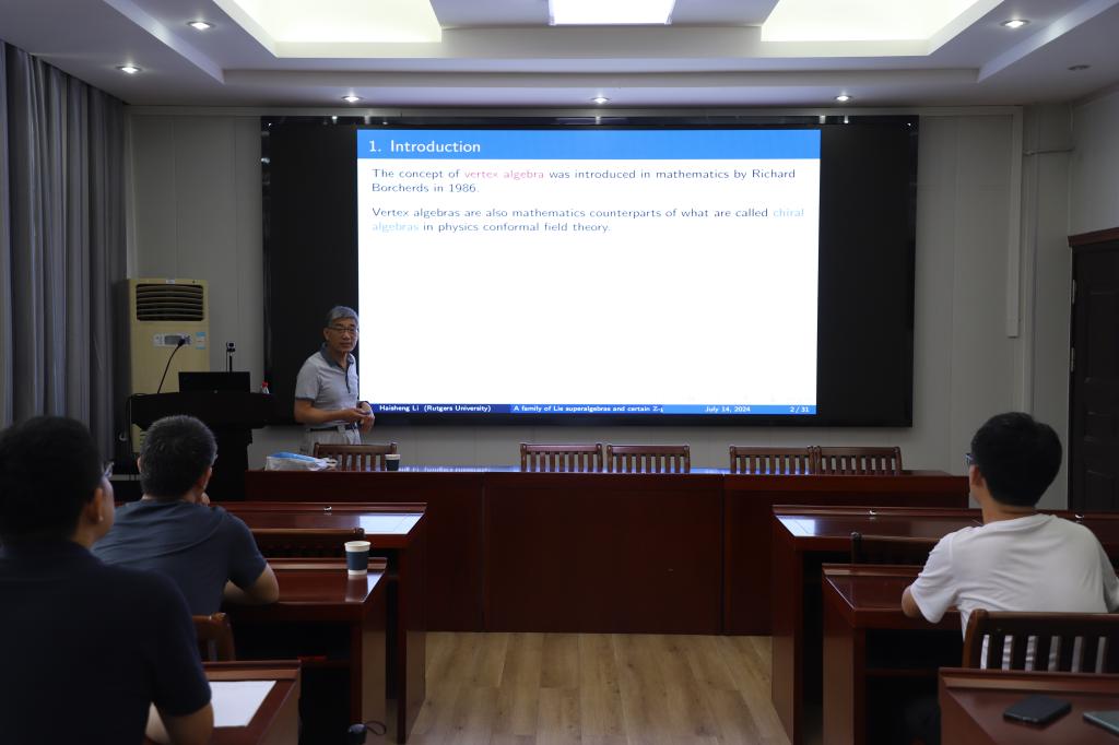 7月13至7月16日,美国罗格斯大学肯顿分校终身教授,著名华人数学家李海生老师莅临公司学术交流。李海生老师7月14日在315学术报告厅作了题为“A family of Lie superalgebras and certain Z-graded conformal vertex superalgebras”的报告。报告会由太阳集团tyc9728经理蔡礼明教授主持,部分老师及研究生聆听了此次报告。