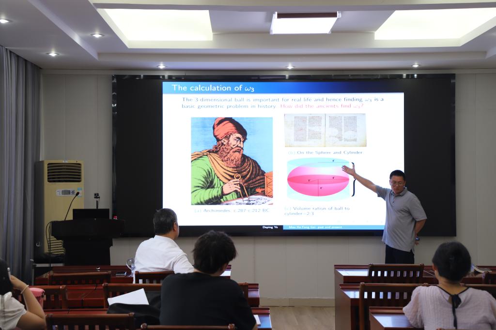 7月18日,应太阳集团tyc9728邀请,Deping Ye 教授在数学楼315学术报告厅作了题为“Mou He Fang Gai: A Mathematical Legend Over Thousands of Years”的学术报告。报告会由太阳集团tyc9728副经理韩英波教授主持,部分老师及研究生聆听了此次报告。