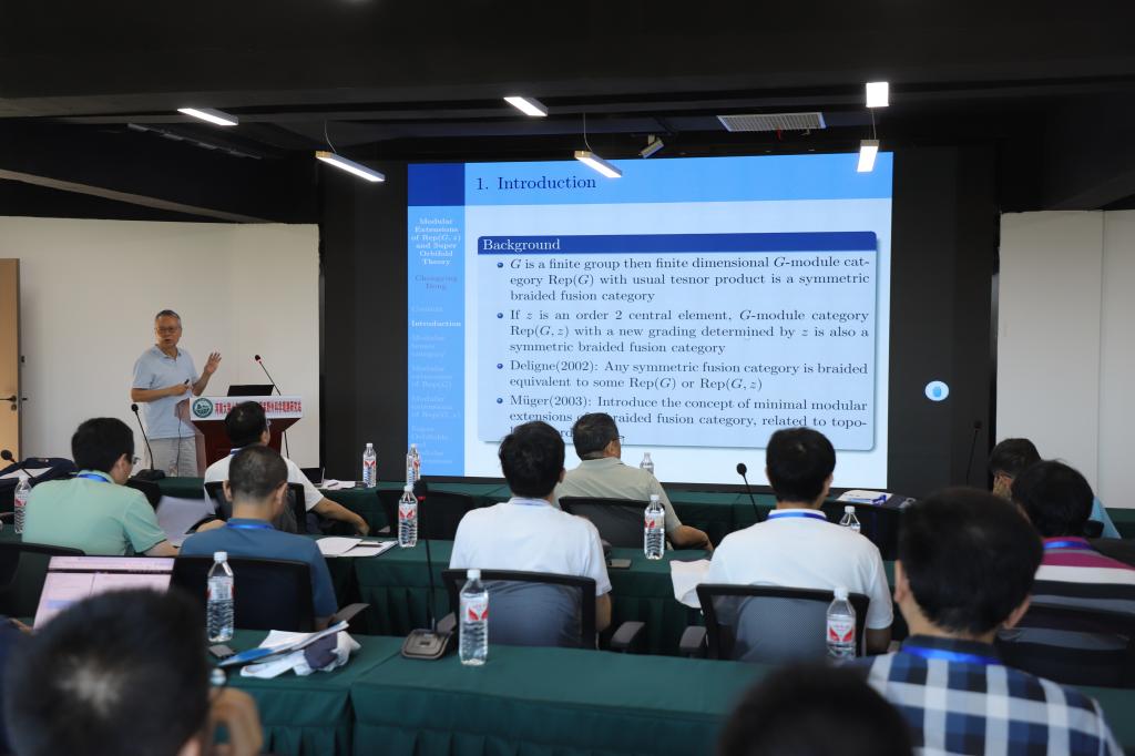 7月30日-8月1日会议期间, 美国加州大学圣克鲁兹分校大学的董崇英做了题目为《Modular extensions of Rep(G,z) and super orbifold theory》的报告。