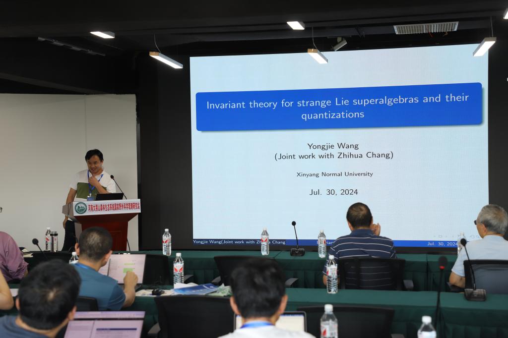 合肥工业大学的汪永杰做了题目为《Invariant theory for strange Lie superalgebras and their quantization》的报告。