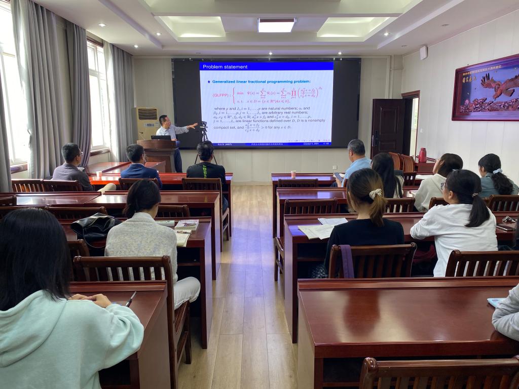 10月5日上午,应太阳集团tyc9728邀请,河南科技公司焦红伟教授作了题为《Global optimization methods for the minimax linear fractional programming problems》的学术报告。报告会由韩英波教授主持,部分老师及研究生聆听了此次报告