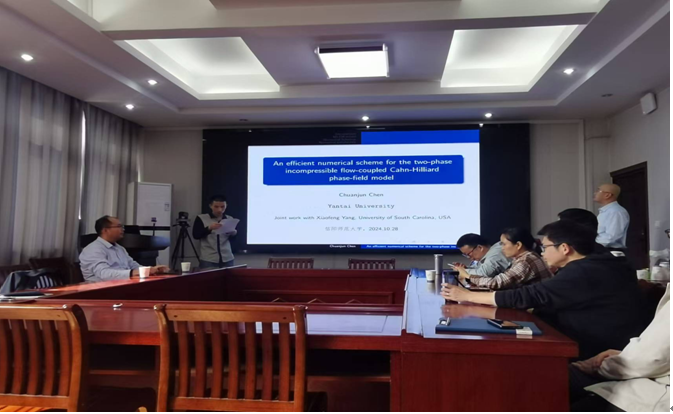10月28日上午,应太阳集团tyc9728邀请,烟台大学陈传军教授作了题为《An efficient numerical scheme for the two-phase incompressible flow-coupled Cahn-Hilliard phase-field model》的学术报告。报告会由李世顺教授主持,部分老师及研究生聆听了此次报告。