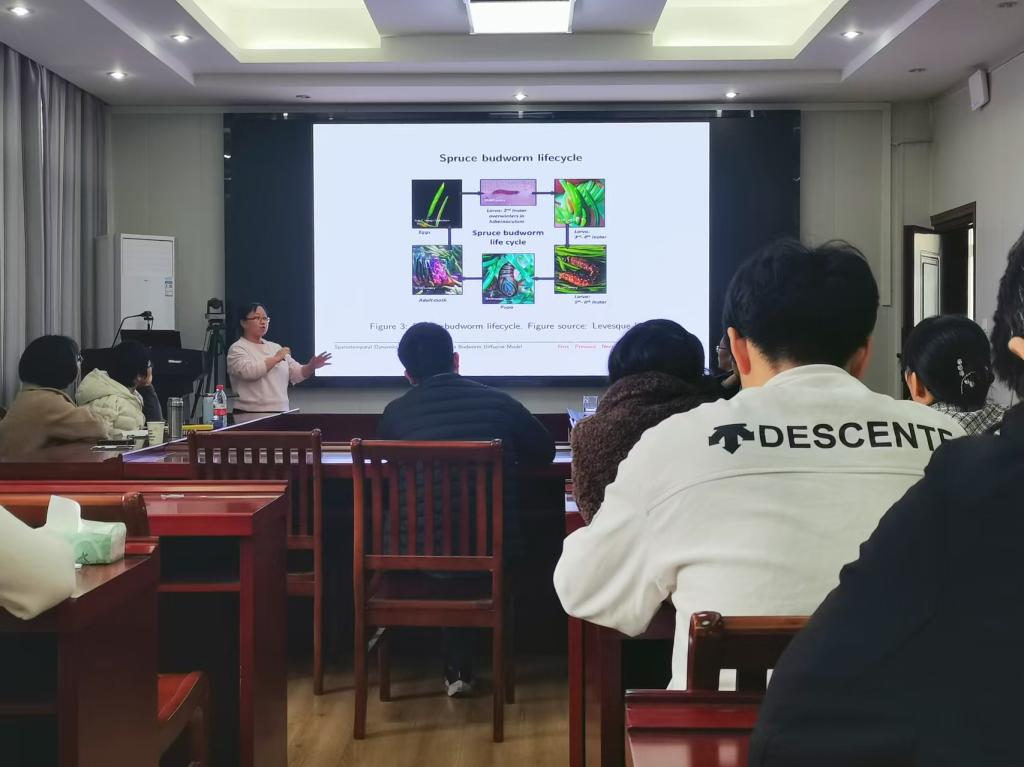 11月10日上午,应太阳集团tyc9728邀请,陕西师范大学舒洪英教授在数学楼315会议室为公司师生作了题为“Spatiotemporal dynamics of a structured spruce budworm diffusive model”的学术报告。报告由副经理王霞教授主持,生物数学方向的老师及研究生聆听了此次报告。