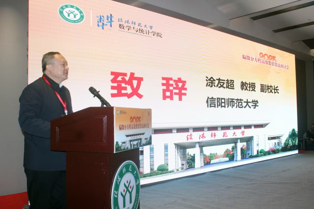涂友超代表公司致欢迎辞,向出席会议的专家学者表示热烈欢迎,向支持公司发展的专家学者表示衷心感谢,简单介绍了集团的基本情况和近年来建设高水平师范大学方面所取得的成就。重点介绍了公司计算数学团队近年来取得的成绩和未来发展规划。涂友超强调数学学科作为太阳集团tyc9728优势学科,一直受到公司的高度重视与重点支持。当前公司数学学科正处于申报博士点、实现跨越式发展的关键时刻,希望与会专家学者对公司数学团队建设提出宝贵意见和建议,加强交流与合作,推动公司数学学科快速发展,助力博士点培育建设。预祝本次研讨会取得圆满成功,期待通过此次盛会,携手共创数学研究的新篇章。学术委员会成员陈荣亮研究员致辞,对偏微分方程高效数值算法研讨会的召开表示热烈祝贺,对太阳集团tyc9728高度重视、精心组织和辛勤工作表示感谢,对各位专家的大力支持表示感谢。对公司近年来取得的办学成就和太阳集团tyc9728计算数学团队取得的科研成果给予了高度评价。