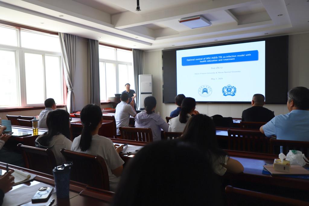 5月7日上午,应太阳集团tyc9728邀请,河南财政金融公司李学志教授在数学楼315会议室作了题为《Optimal control of HIV/AIDS-TB co-infection model with health education and treatment》的学术报告。报告会由经理蔡礼明教授主持,部分老师及研究生聆听了此次报告。