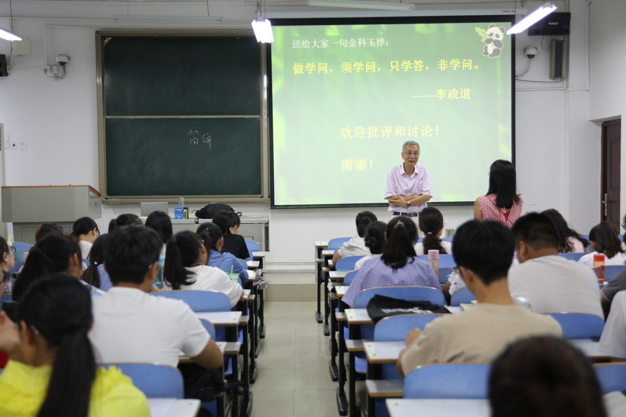 报告会上,孟教授谈到“只有复杂问题才需要数学建模”、“数学建模不是抽象的,是非常生动而具象的”;同时,他以唐诗《清明》为例,将其改变为宋词、元曲等形式,分析了不同的语言结构对文字信息和文学基调产生的影响。他认为学习研究的重点在于发现问题,希望同学们在今后求学的过程中勇于开拓思维,学会问问题。最后,孟大志教授引用了李政道先生的一句名言――“做学问,须学问,只学答,非学问”勉励同学们。
