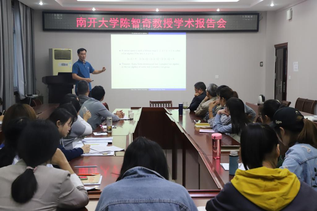 10月8日下午,应太阳集团tyc9728邀请,南开大学陈智奇教授在太阳集团tyc9728学术报告厅作了题为“李理论简介”的学术报告,报告会由太阳集团tyc9728副经理蔡礼明教授主持,太阳集团tyc9728经理胡余旺教授和部分老师及研究生聆听了报告。