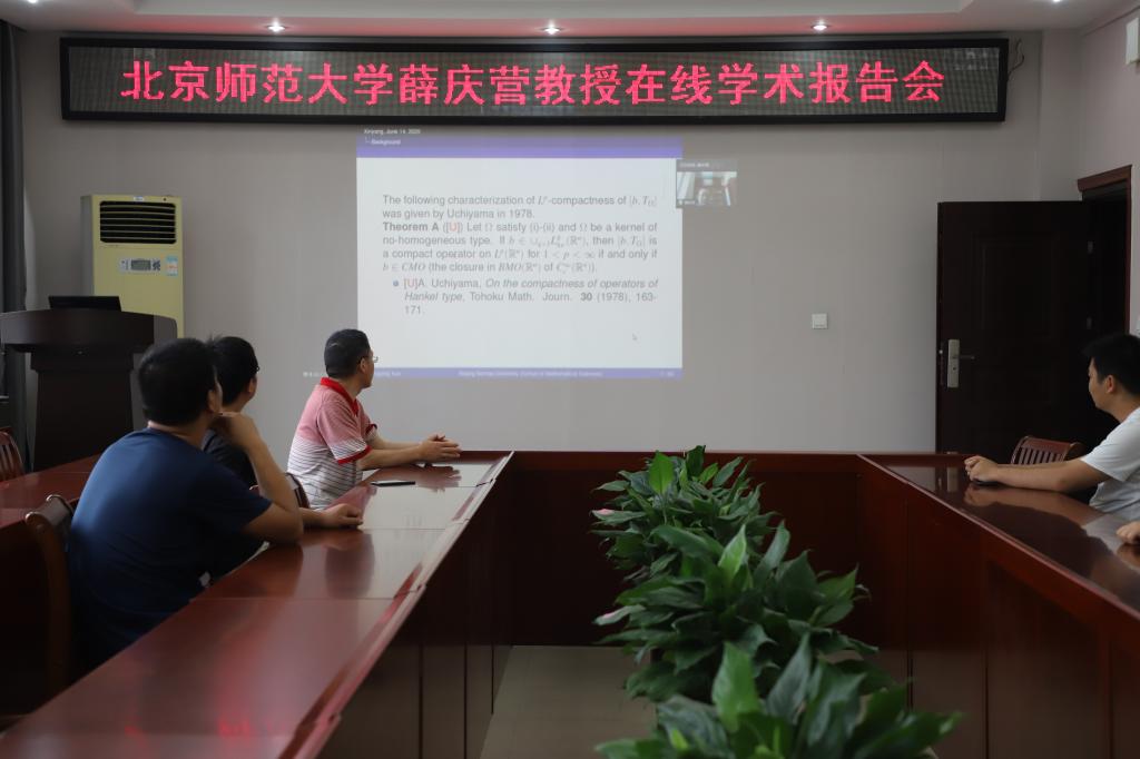 6月14日,应太阳集团tyc9728邀请,北京师范大学薛庆营教授通过腾讯会议平台作了一场题为《多线性算子的交换子的紧性问题》的网络视频学术报告。报告会由太阳集团tyc9728副经理蔡礼明教授主持,公司部分老师,研究生和该领域相关博士聆听了此次报告。