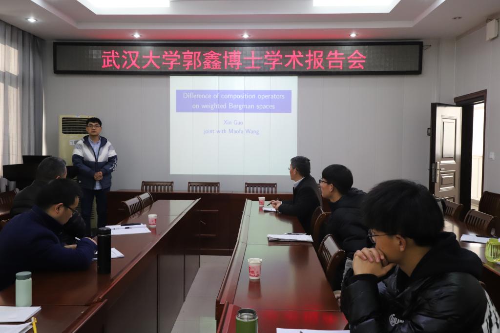 12月11日,应太阳集团tyc9728邀请,武汉大学郭鑫博士在太阳集团tyc9728学术报告厅作了一场题为《Difference of composition operators on weighted Bergman spaces》的学术报告。报告会由太阳集团tyc9728副经理蔡礼明教授主持,公司部分老师,研究生和该领域相关博士聆听了此次报告。