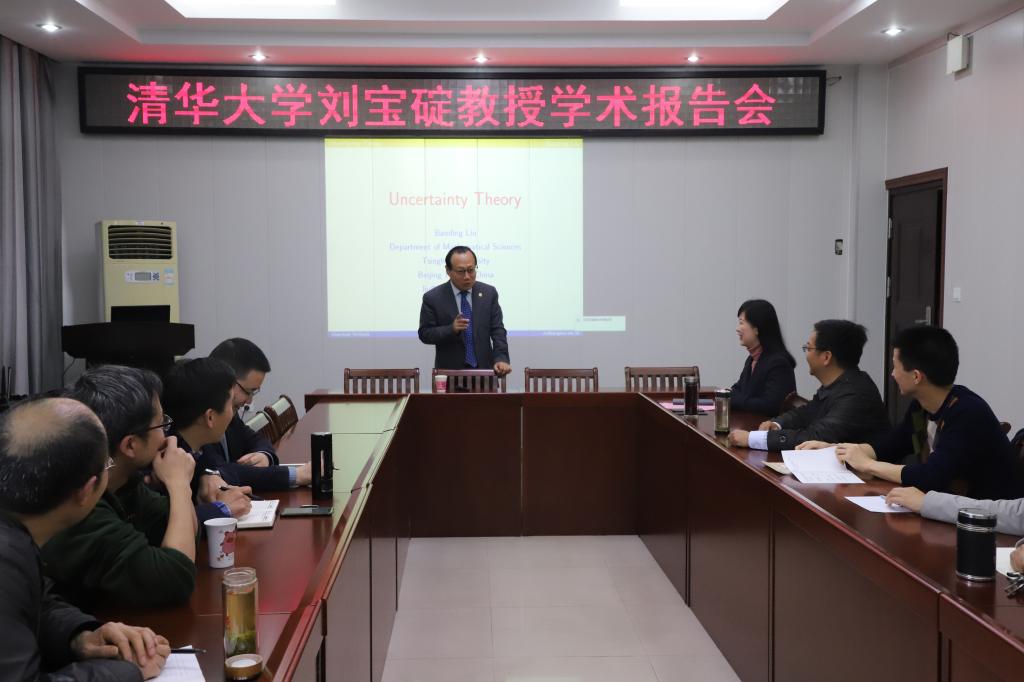 在报告中,刘宝碇教授首先介绍了概率论和不确定理论的公理化数学系统,两者的区别在于前者假设独立事件的联合概率为各个事件概率的乘积,而后者假设独立事件的联合信度为各个事件信度取小;其次,在实际应用时,如果分布函数接近实际频率,则应使用概率论,否则,使用不确定理论;最后,刘教授结合实际问题讨论了学习、研究和应用不确定理论的必要性。报告结束后,刘宝碇教授一一回答了大家的提问,与在场师生进行了深入的交流互动,大家纷纷表示收获颇丰。