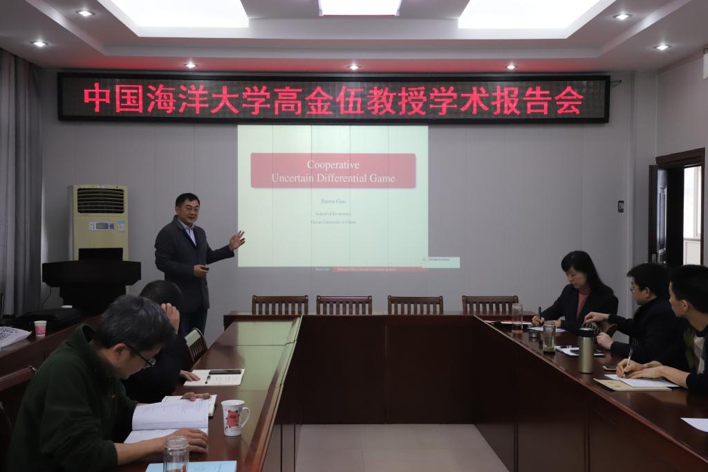 4月23日上午,应太阳集团tyc9728邀请,中国海洋大学高金伍教授在公司学术报告厅做了一场题为《Cooperative uncertain differential game with transferrable payoffs》的学术报告。报告会由公司党委书记王娟教授主持,公司部分老师和研究生聆听了此次报告。