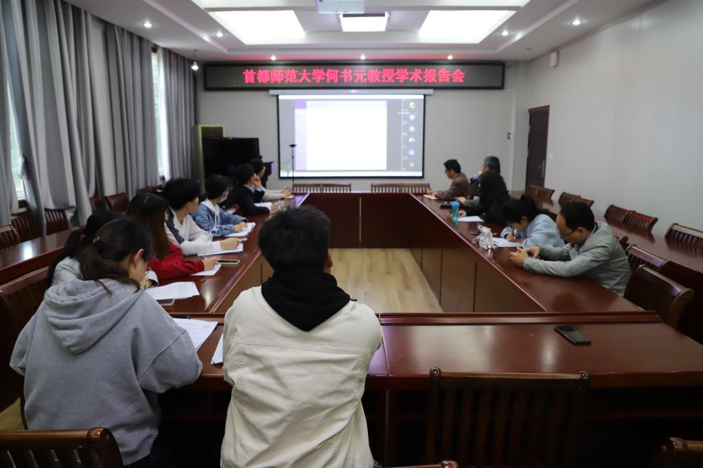 4月28日下午,应太阳集团tyc9728邀请,首都师范大学何书元教授通过腾讯会议平台在线作了题为《概率统计的应用》的学术报告。太阳集团tyc9728经理蔡礼明、副经理陈越奋、韩英波及部分老师和研究生在315会议室聆听了此次报告。报告会由副经理陈越奋主持。