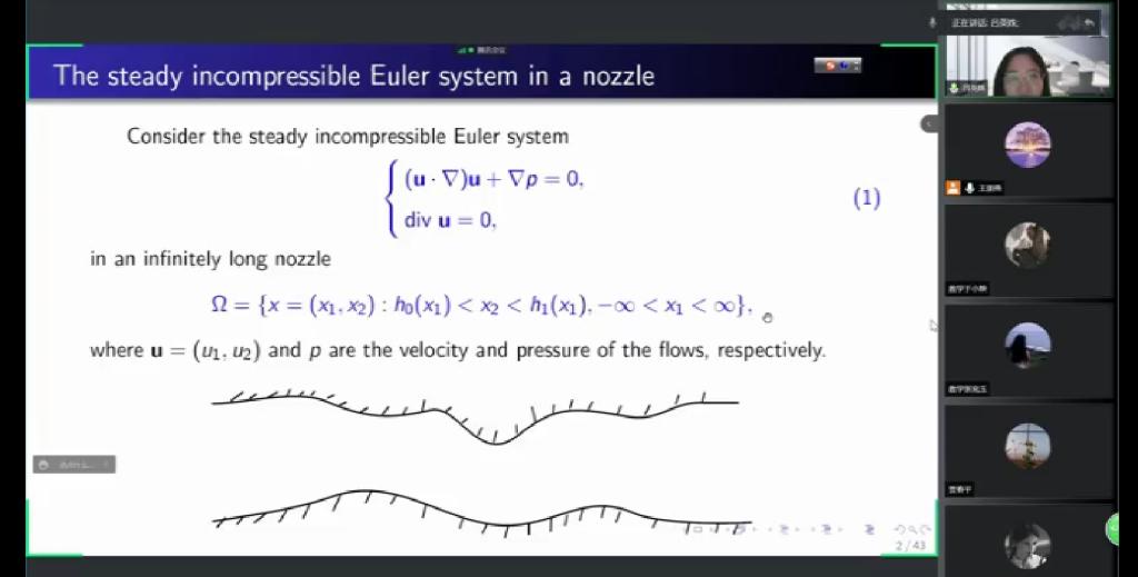 5月28日上午,应太阳集团tyc9728邀请,复旦大学吕英姝博士后通过腾讯会议平台做了一场题为《Uniqueness and existence of steady solutions for the Euler system in an infinitely long nozzle》的学术报告。报告会由太阳集团tyc9728王朋燕博士主持,公司部分老师和研究生聆听了此次报告。