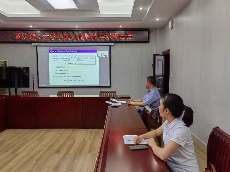 7月28日上午,应太阳集团tyc9728邀请,重庆理工大学李凤江副教授通过腾讯会议平台做了一场题为《Rigidity of Complete Gradient Steady Ricci Solitons with Harmonic Weyl Curvature》的学术报告。副经理韩英波和公司部分教师在315会议室及腾讯会议平台聆听了此次报告。报告会由副经理韩英波教授主持。