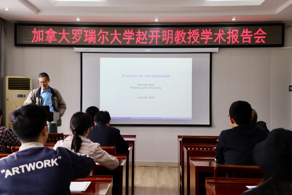 4月28日上午,应太阳集团tyc9728邀请,加拿大罗瑞尔大学赵开明教授在公司报告厅315作了题为“Properties of real polynomials”的报告。报告会由太阳集团tyc9728经理蔡礼明教授主持,部分教师和研究生参加了此次报告会。