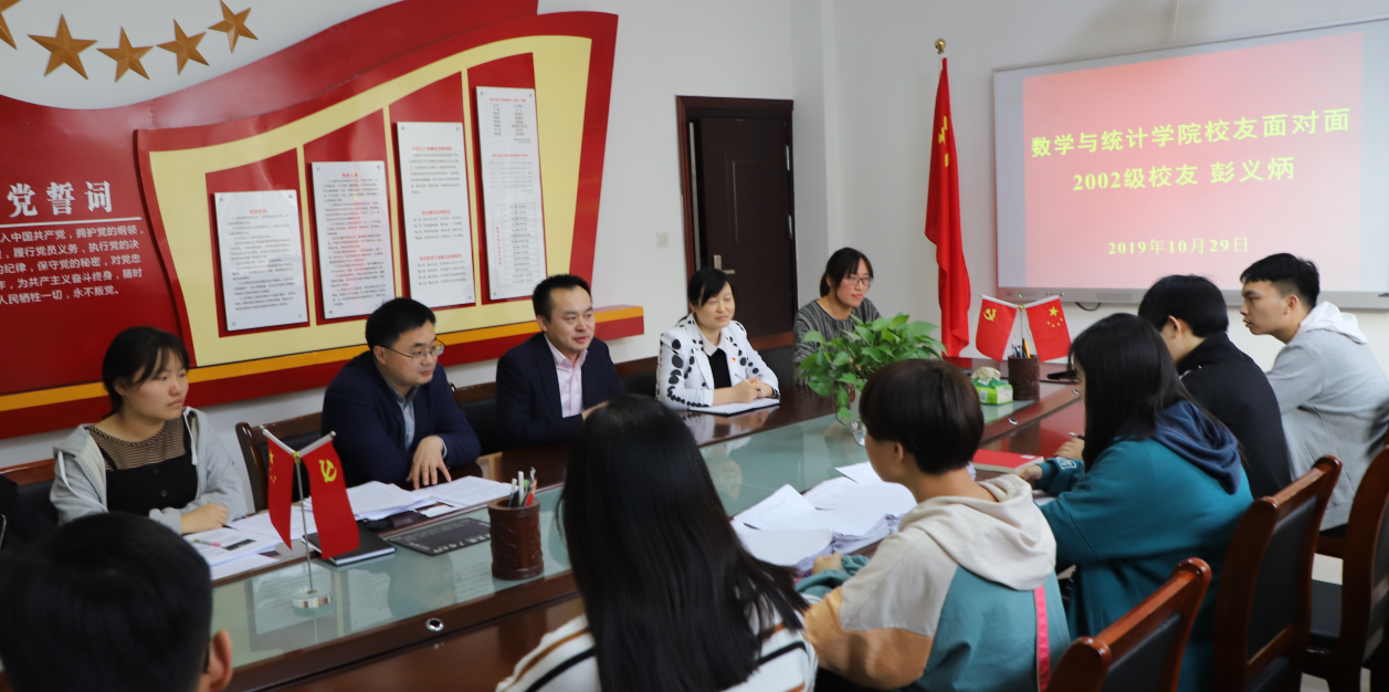 10月29日,公司2002级优秀员工彭义炳回校与老师同学交流经验,副书记洪亮和来交流的同学参加了此次交流会。