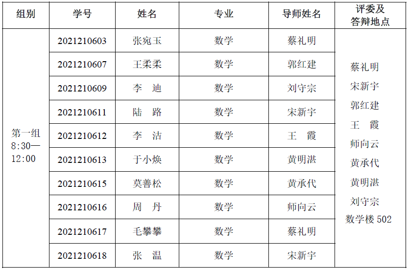 2022-2023学年第二学期2022级专业硕士研究生(两年制专业硕士)、2022级同等学历研究生、2020级硕师计划研究生学位论文选题报告和2021级学术硕士研究生(三年制学术硕士)学位论文中期考核答辩会定于2023年6月27日举行,其中中期考核时间为8:30—12:00,选题报告时间为15:00—18:30,具体分组见下表。参加答辩的同学需提前填写好《信阳师范公司硕士研究生学位论文选题报告》或《信阳师范公司硕士研究生中期考核表》,并按照选题报告或中期考核所列内容准备12分钟左右的汇报课件参加答辩,届时不参加答辩的同学视为考核不通过。