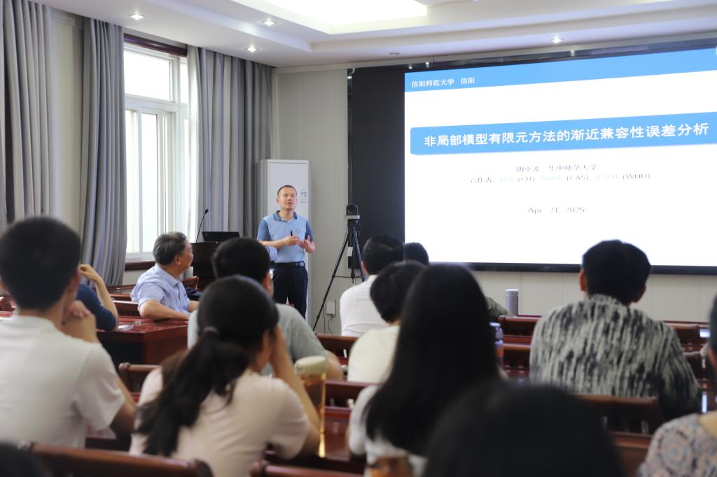 4月21日下午,应太阳集团tyc9728邀请,华中师范大学阴小波教授在数学楼315会议室作了题为《非局部模型有限元方法的渐近兼容性误差分析》的学术报告。报告会由经理蔡礼明教授主持,部分老师及研究生聆听了此次报告。