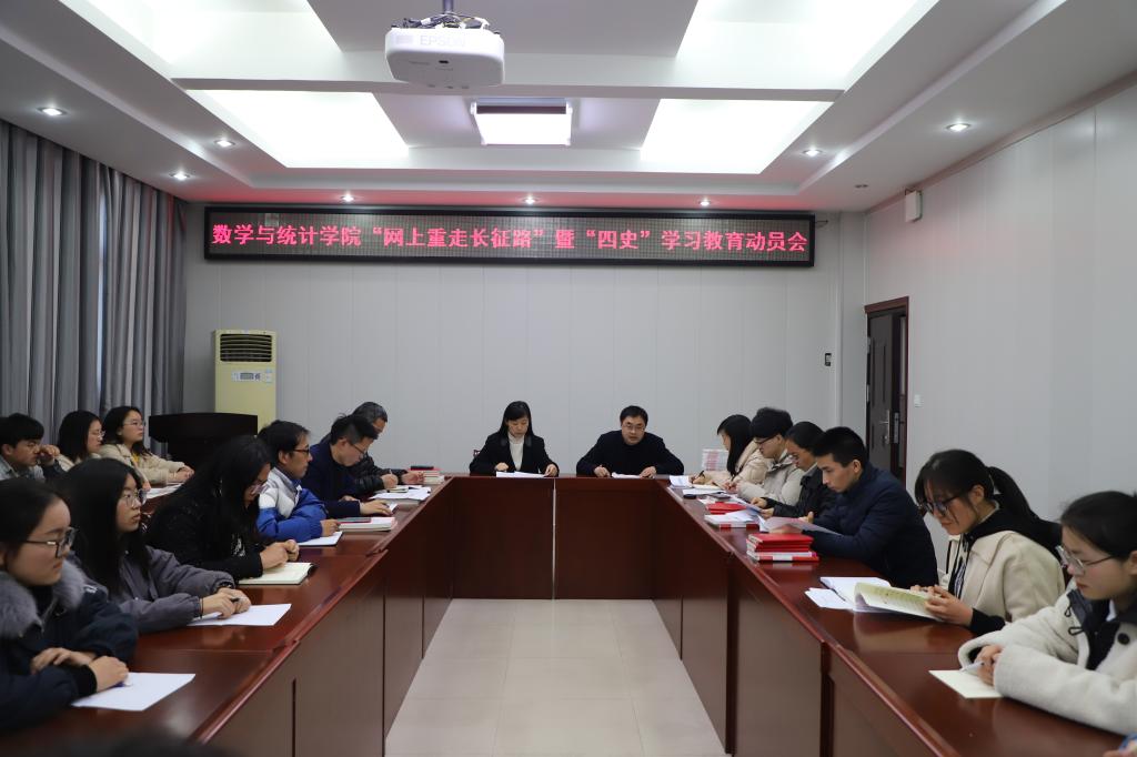 为庆祝建党100周年,根据河南省教育厅《关于开展“网上重走长征路”暨推动“四史”学习教育活动的通知》,3月4日,太阳集团tyc9728于数学楼315会议室召开“网上重走长征路”暨推动“四史”学习教育活动推进会。数学与统计公司党委书记王娟、党委副书记洪亮出席会议,公司各党支部书记、各班班委参加了会议,本次会议由洪亮主持。