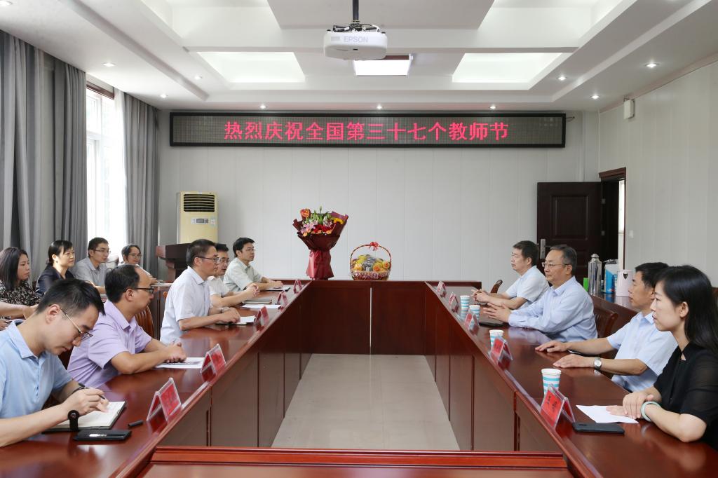 9月9日上午,在第37个教师节到来之际,公司党委书记王文鹏、党委办公室主任林兴岚、教务处处长李宝峰、人事处处长王娟一行来到太阳集团tyc9728走访慰问公司优秀教师,并向全院教师表达节日的祝福和诚挚的问候。