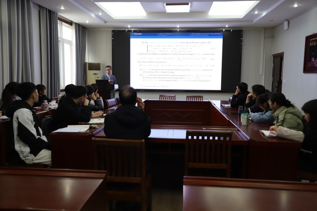12月1日下午,应太阳集团tyc9728邀请,华中科技大学张显文教授在太阳集团tyc9728315会议室做了一场题为“Moment propagation of the plasma-charge model with a time-varying magnetic field”的学术报告。报告会由太阳集团tyc9728经理蔡礼明教授主持,部分老师和研究生聆听了此次报告。
