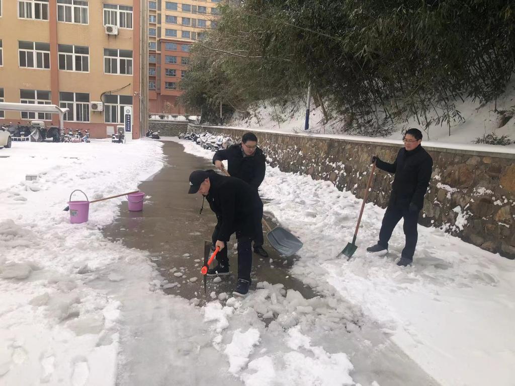 近日,受连续降雪影响,校园内积雪严重,为确保师生安全顺利迎接新学期开学,公司领导亲自带队,与员工党员积极参与铲雪工作。